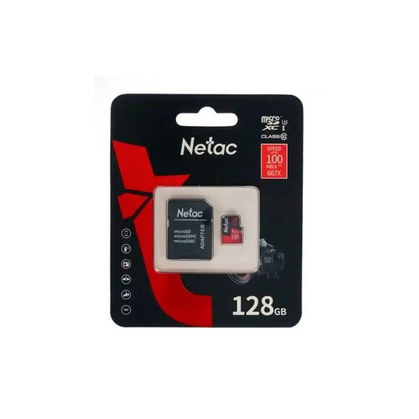 Cartão de Memória Netac P500 Extreme Pro 128GB Micro SDXC C/ Adaptador - NT02P500PRO-128G-R