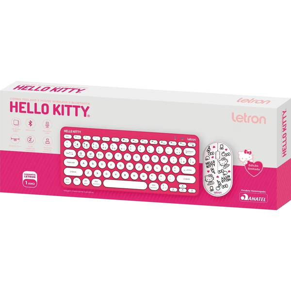 O kit teclado e mouse sem fio hello kitty da letron é perfeito para crianças, adolescentes, jovens e adultos que desejam uma estação de estudo ou trabalho personalizada. Inspirado no universo do hello kitty, o combo apresenta ilustrações da personagem, sendo totalmente estampado e disponível em edição limitada!
