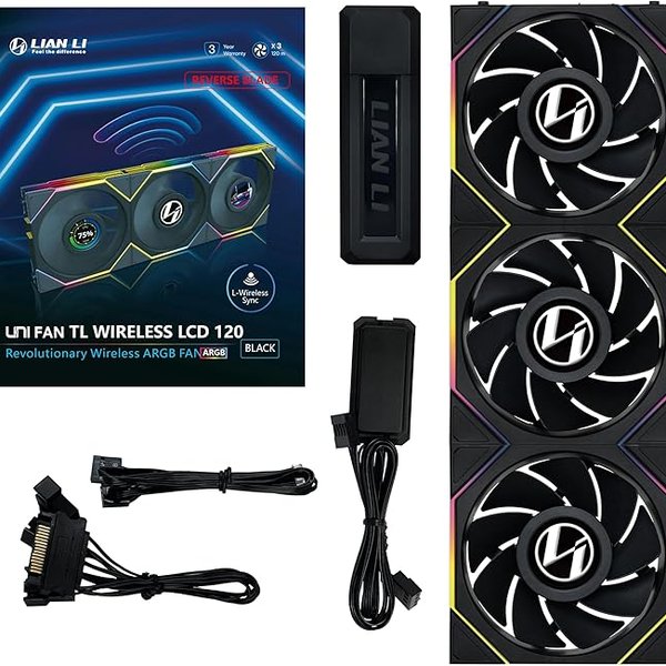 O UNI FAN TL Wireless e o TL LCD Wireless apresentam a inovadora tecnologia de sincronização sem fio da LIAN LI, utilizando um sinal sem fio de 2.4 GHz para controlar os efeitos de iluminação e a velocidade do ventilador para melhorar ainda mais a experiência de construção do PC, ao mesmo tempo em que proporciona resfriamento eficiente, iluminação deslumbrante e operação silenciosa.