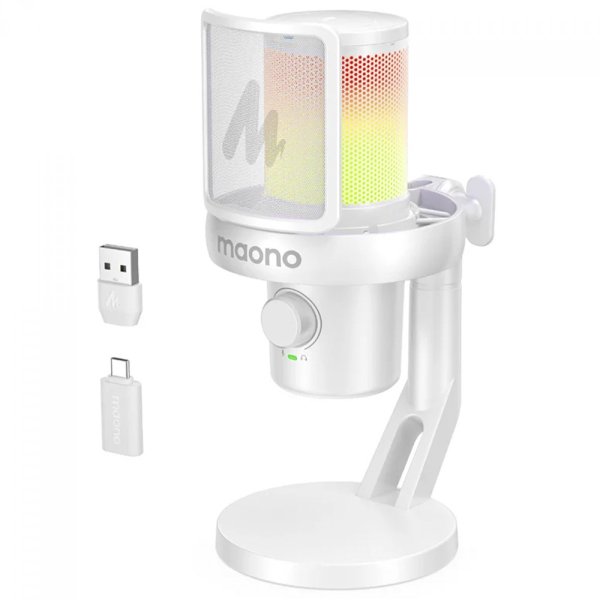 MICROFONE GAMER MAONO DM40 PRO WHITE, RGB, WIRELESS/USB, CONDENSADOR, BRANCO