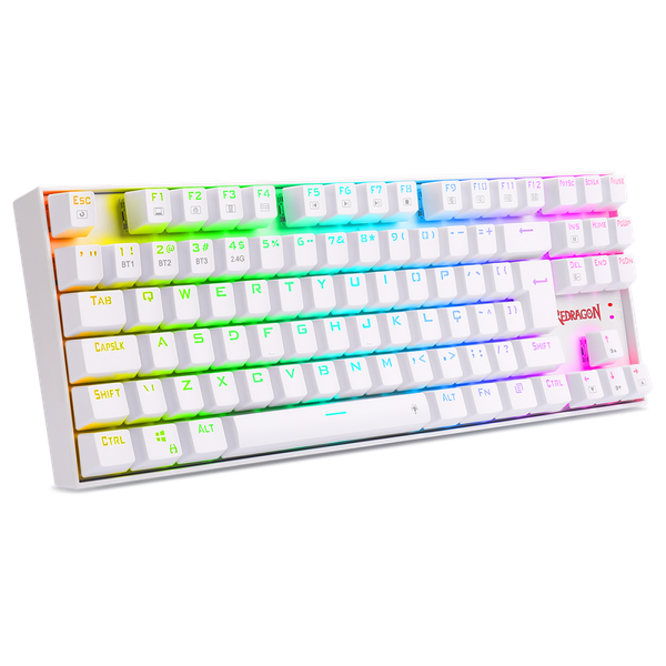 Teclado Mecânico Gamer Redragon Kumara Pro, Wireless, RGB, Switch Blue, ABNT2, White, K552RGB-BRS-W PT-BLUE